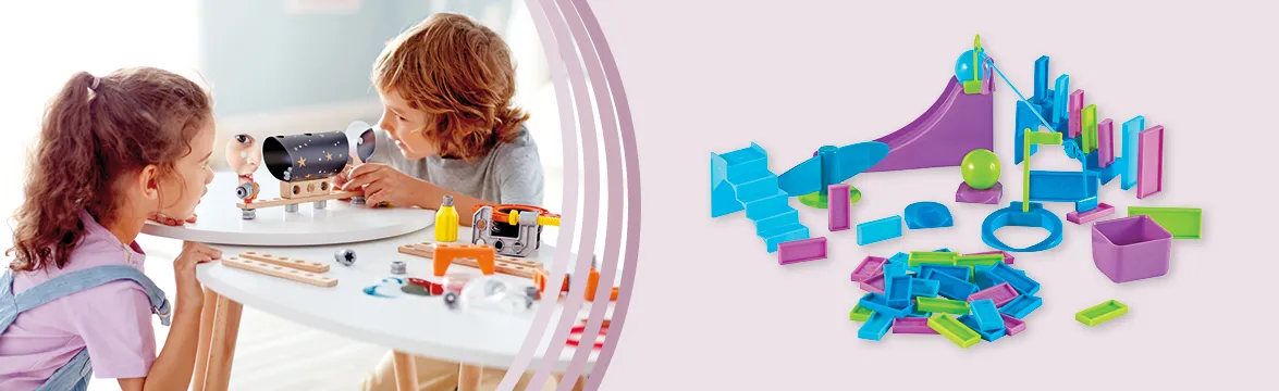 - Leg med boldbaner giver ikke kun den første kontakt med fænomenet tyngdekraft, men fremmer også finmotorikken og hånd-øje-koordinationen.